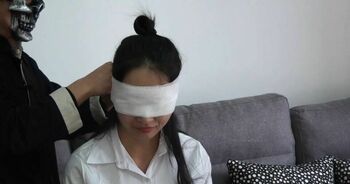美女笑笑蒙眼捆绑堵嘴丝袜套头挣扎